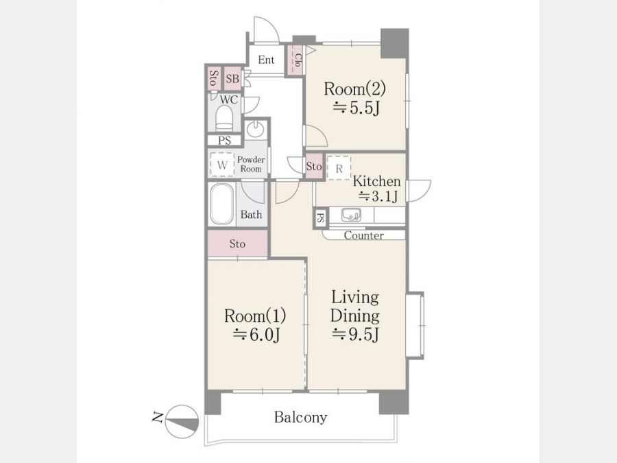 | 敷金/礼金 | 1ヶ月 / なし | 専有面積 | 55.02m² |