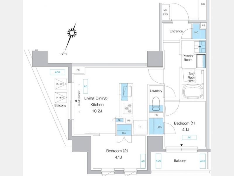 LDK 10.2 畳 洋室 4.1 畳 2 室 |