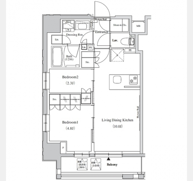 洋室 2.3 畳 洋室 4.8 畳 LDK 10 畳 |