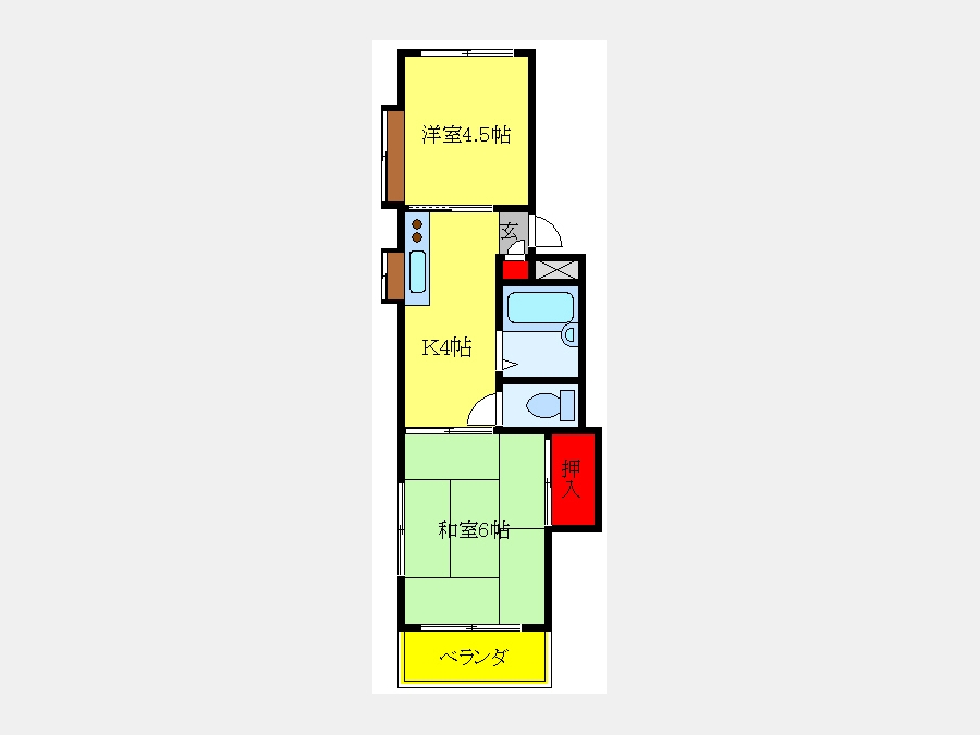 和室 6 畳 洋室 4.5 畳 K |