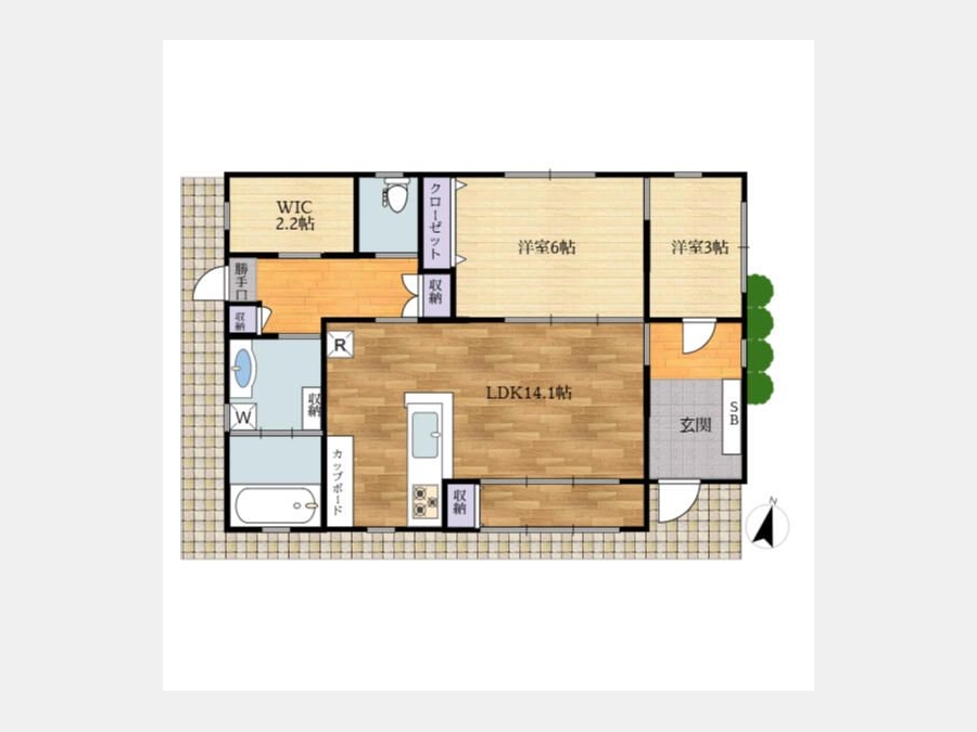 洋室 6 畳 LDK 14.1 畳 洋室 3 畳 |