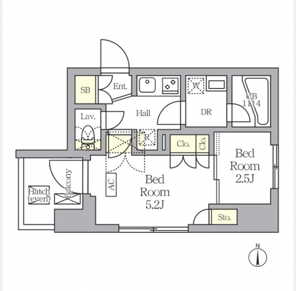 洋室 5.2 畳 洋室 2.5 畳 |