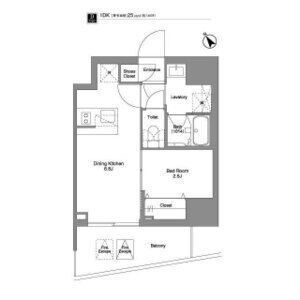 | 敷金/礼金 | 1ヶ月 / なし | 専有面積 | 25.33m² |
