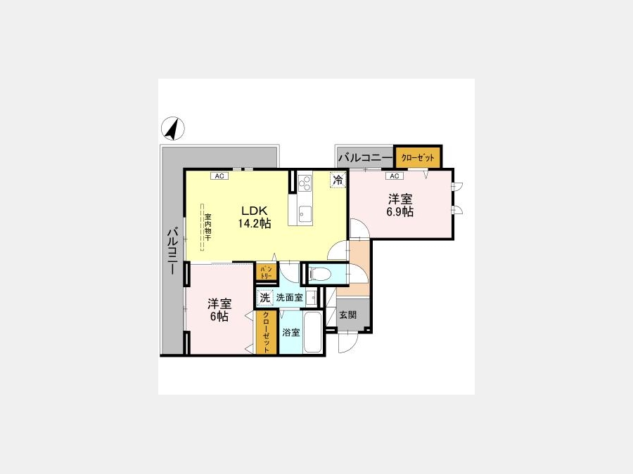 LDK 14.2 畳 洋室 6.9 畳 洋室 6 畳 |