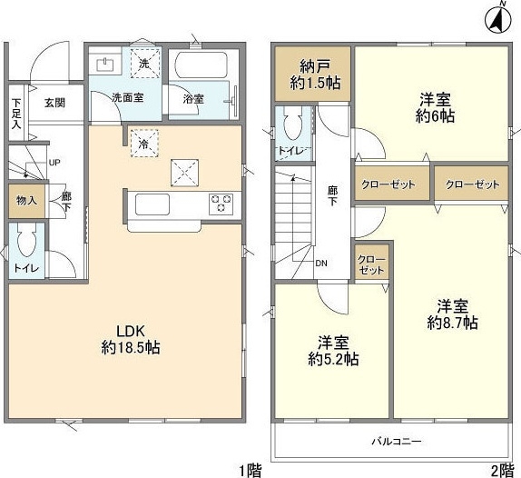 LDK 18.5 畳 洋室 8.7 畳 洋室 6 畳 洋室 5.2 畳 S 1.5 畳 |