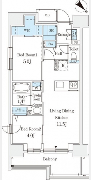 洋室 5 畳 洋室 4 畳 LDK 11.5 畳 |