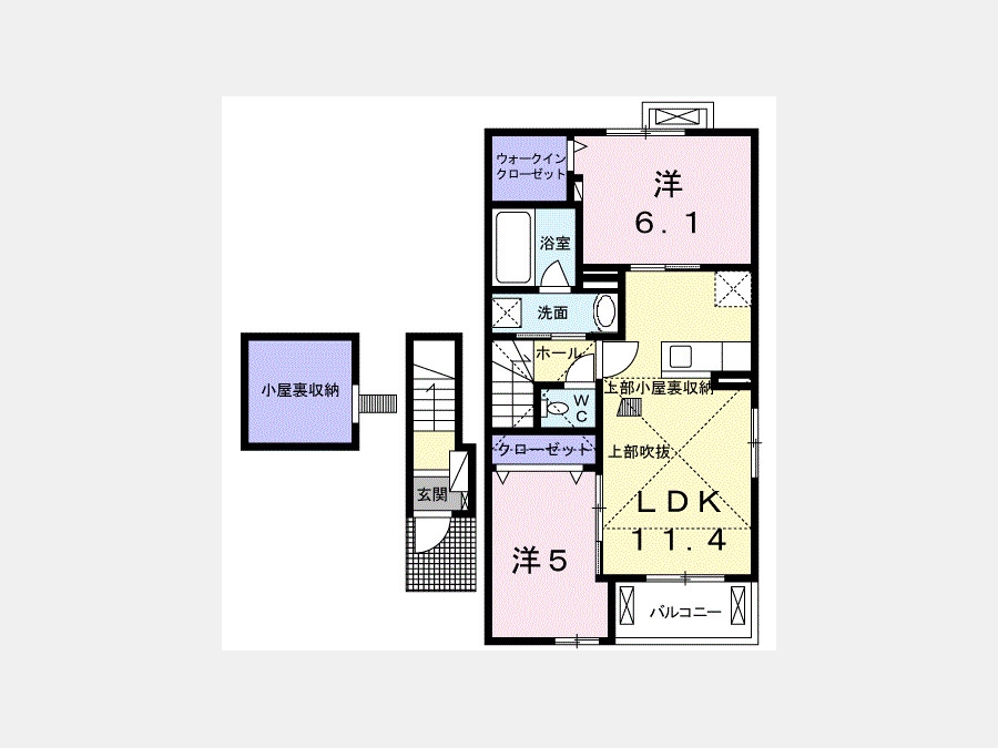 洋室 5 畳 洋室 6.1 畳 LDK 11.4 畳 |