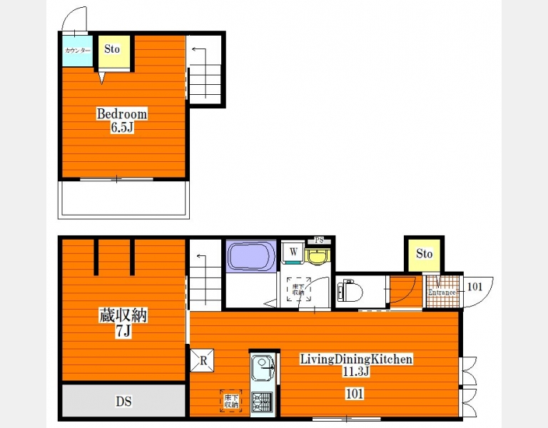 | 間取り | 1LDK | 階建 | 1階/2階建 |