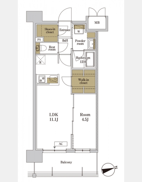 LDK 11.1 畳 洋室 4.5 畳 |