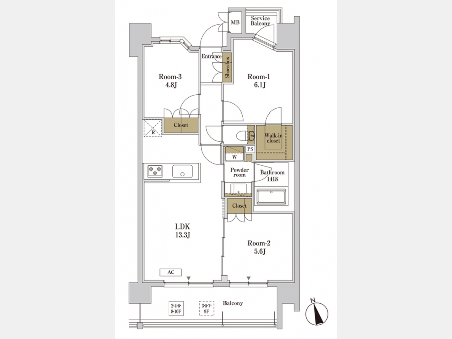 LDK 13.3 畳 洋室 4.8 畳 洋室 6.1 畳 洋室 5.6 畳 |