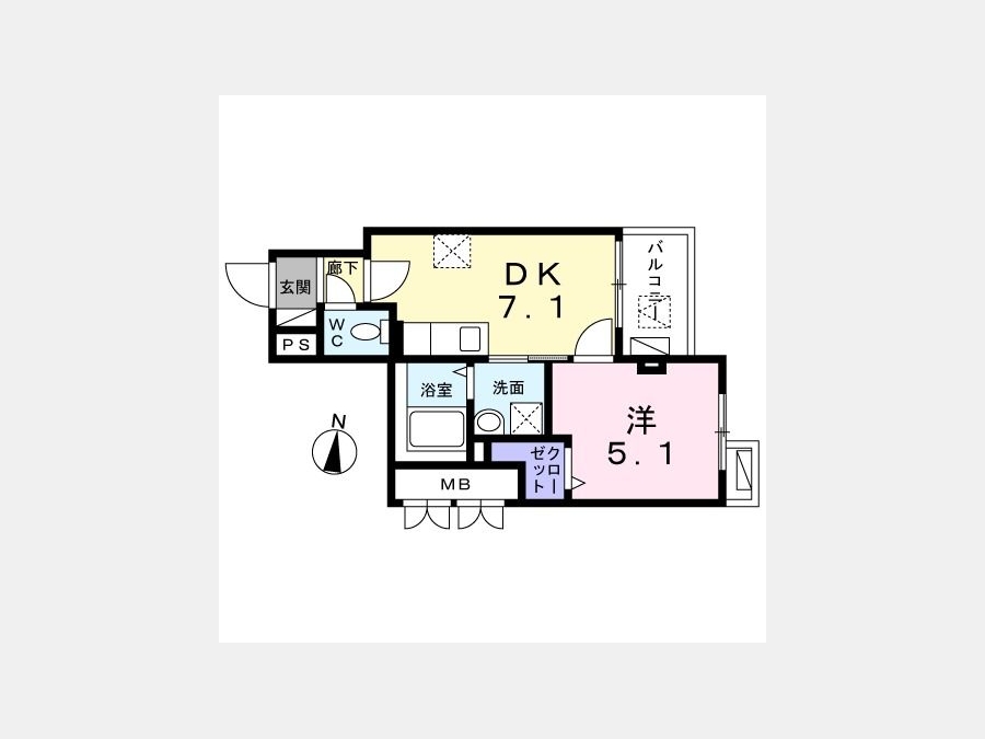 洋室 5.1 畳 1 室 DK 7.1 畳 1 室 |