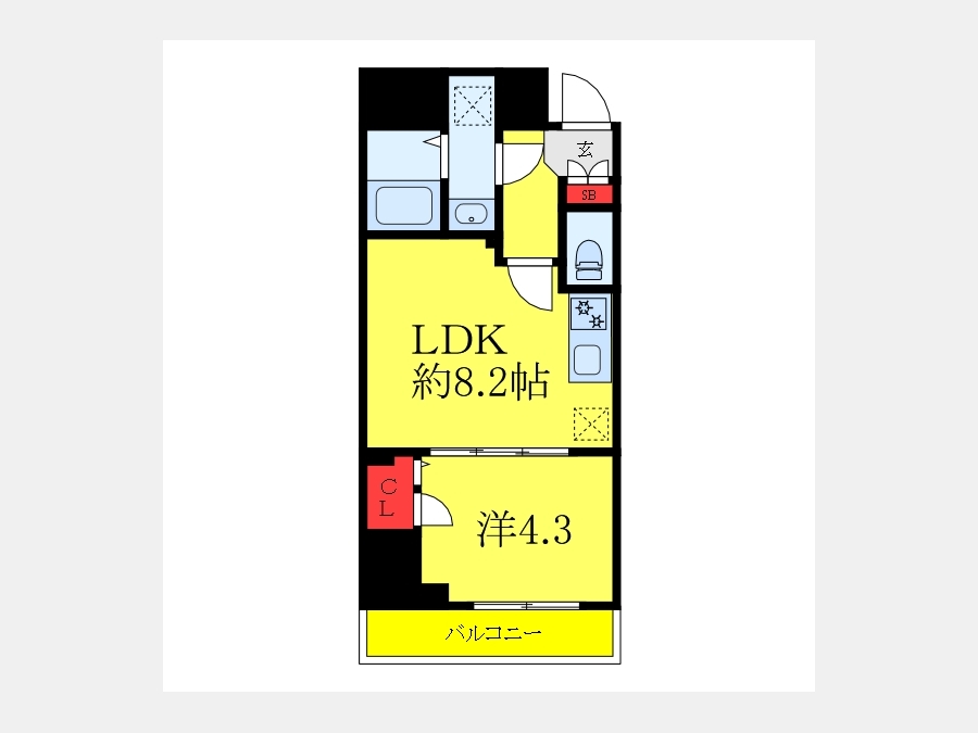 洋室 4.3 畳 LDK 8.2 畳 |