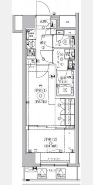 洋室 5.7 畳 洋室 4.4 畳 K |