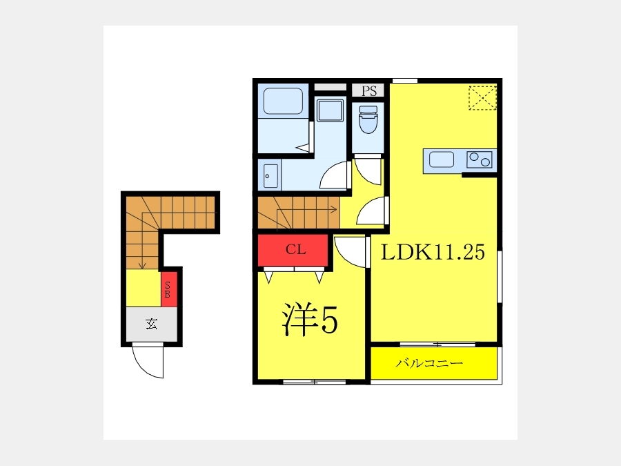 | 間取り | 1LDK | 階建 | 2階/2階建 |