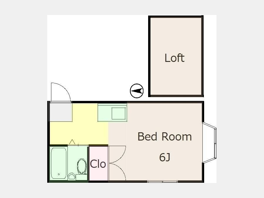 | 設備・条件 | 2階以上、最上階、角部屋、ロフト付き、エアコン、即入居可、礼金なし、敷金なし、保証人不要、ルームシェア相談、360°パノラマ有り、CATV、都市ガス | ||