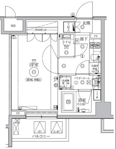 | 専有面積 | 25.25m² | バルコニー面積 | |