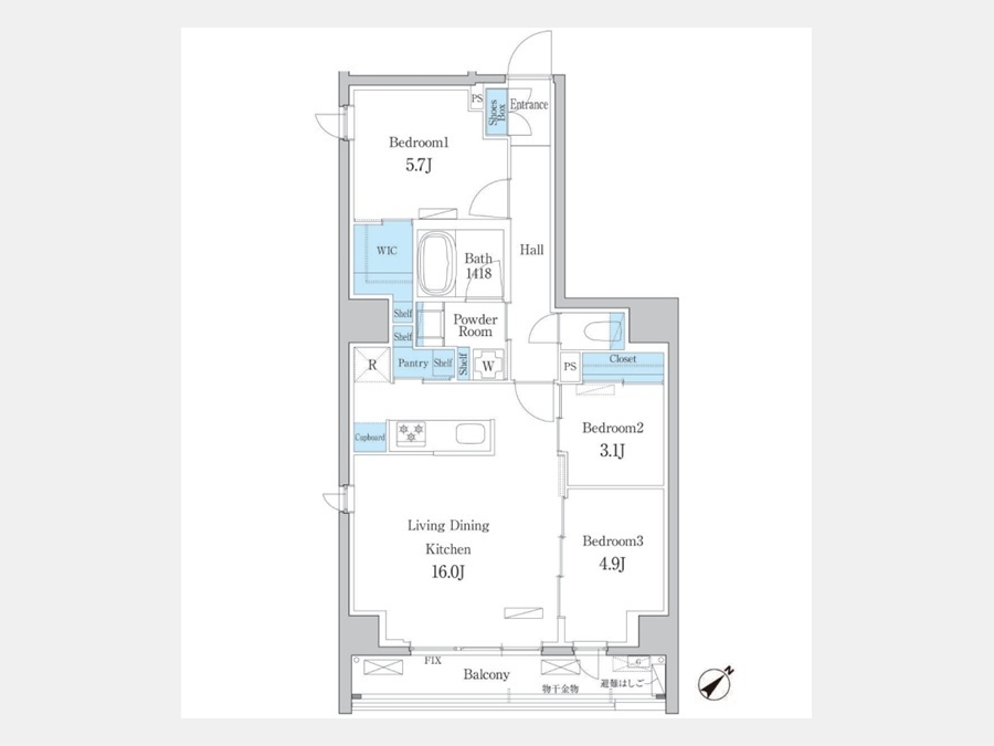 LDK 16 畳 1 室 洋室 5.7 畳 1 室 洋室 4.9 畳 1 室 洋室 3.1 畳 1 室 |