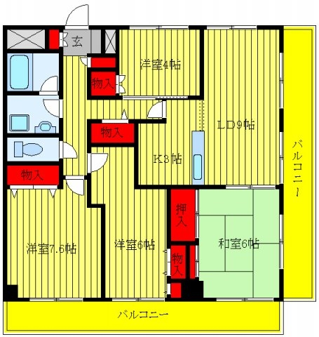 LDK 12 畳 和室 6 畳 洋室 7.6 畳 洋室 6 畳 洋室 4 畳 |