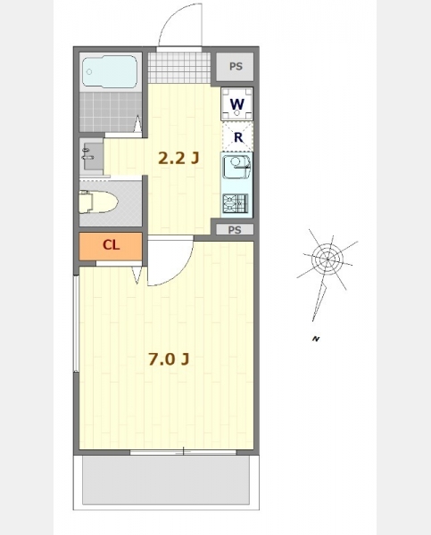 | 敷金/礼金 | なし / なし | 専有面積 | 22.84m² |
