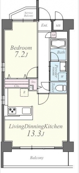 洋室 7.2 畳 1 室 LDK 13.3 畳 1 室 |