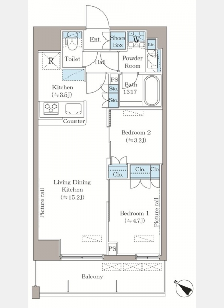 LDK 15.2 畳 洋室 3.2 畳 洋室 4.7 畳 |