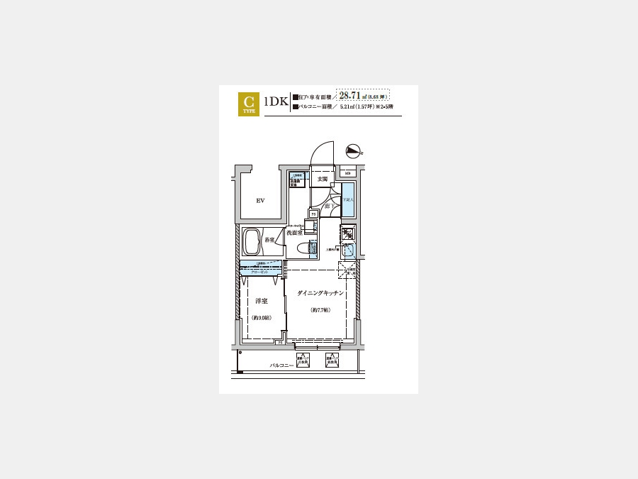 | 専有面積 | 29.70m² | バルコニー面積 | |