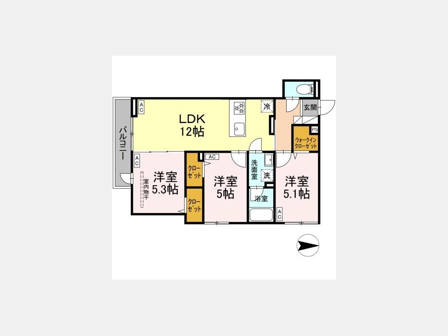 LDK 12 畳 洋室 5.3 畳 洋室 5.1 畳 洋室 5 畳 |