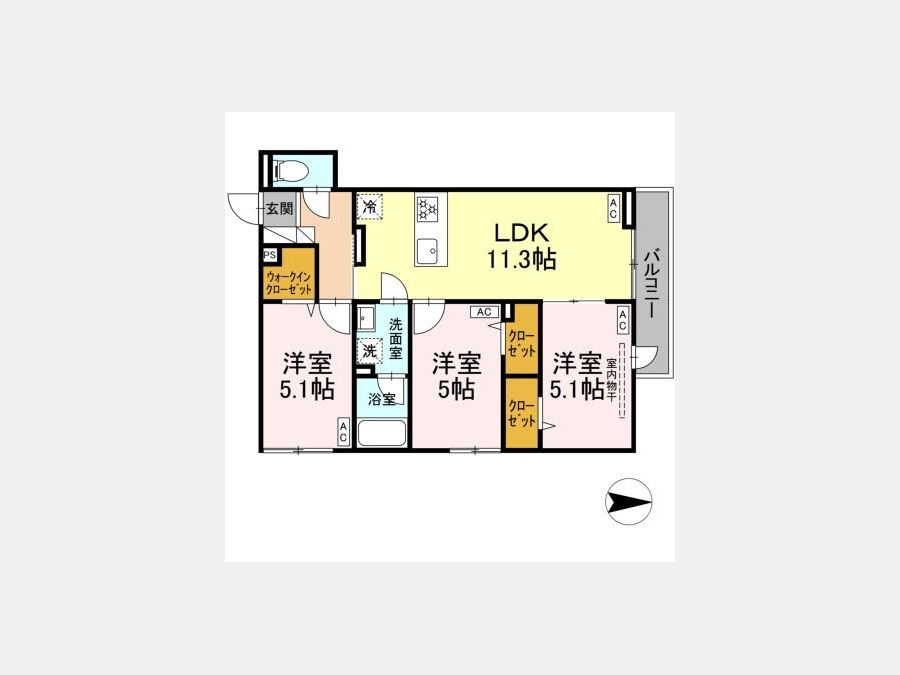 LDK 11.3 畳 洋室 5.1 畳 洋室 5.1 畳 洋室 5 畳 |