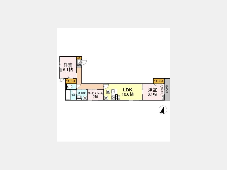 LDK 10.6 畳 洋室 6.1 畳 洋室 6.1 畳 S 3 畳 |