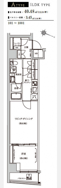 | 専有面積 | 40.48m² | バルコニー面積 | |