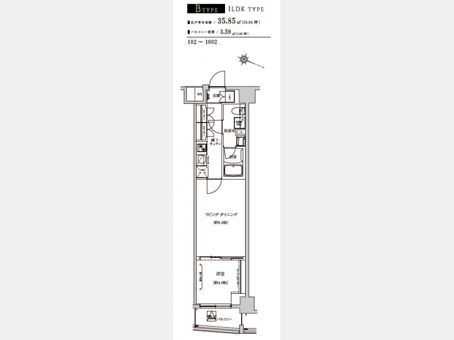 | 敷金/礼金 | なし / なし | 専有面積 | 35.85m² |