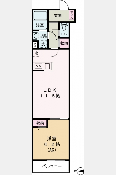 LDK 11.6 畳 1 室 洋室 6.2 畳 1 室 |