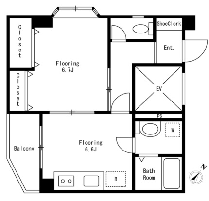 洋室 6.7 畳 1 室 DK 6.6 畳 |