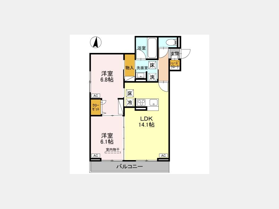 洋室 6.1 畳 LDK 14.1 畳 洋室 6.8 畳 |