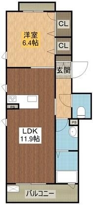 洋室 6.4 畳 LDK 11.9 畳 |