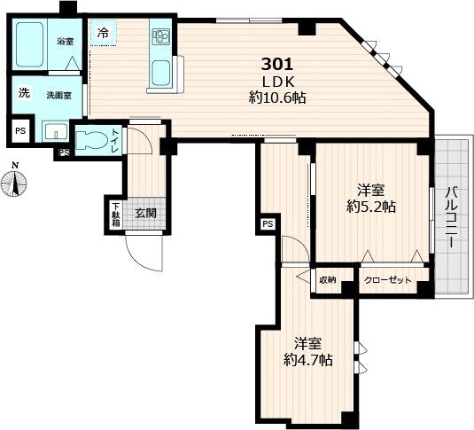 LDK 10.6 畳 1 室 洋室 4.7 畳 1 室 |