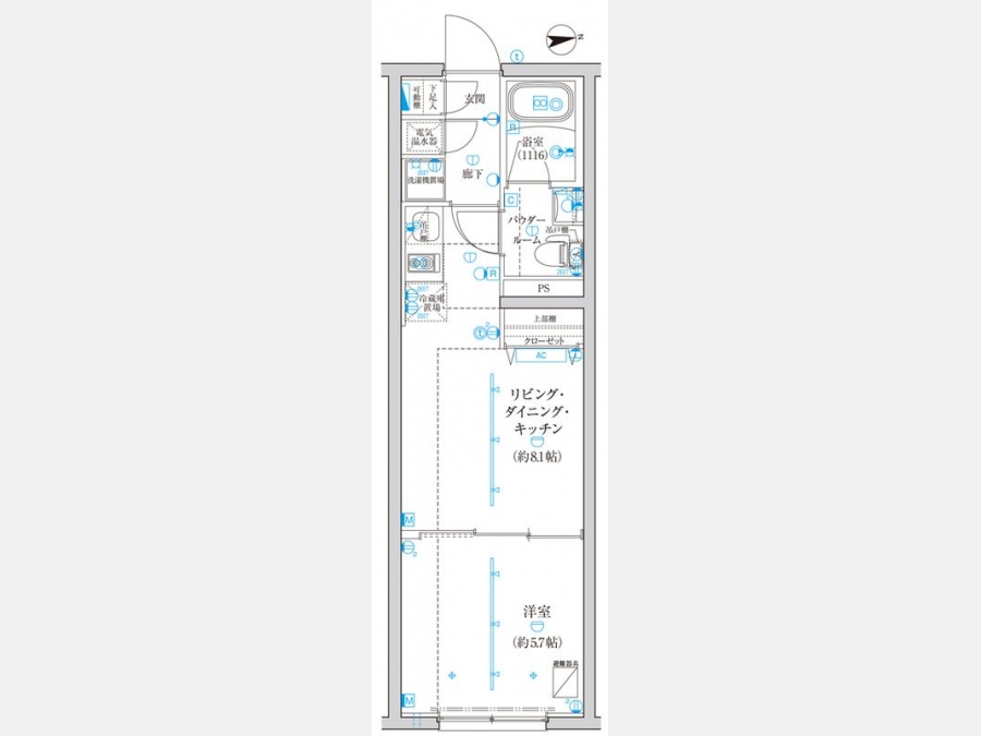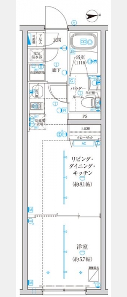 洋室 5.7 畳 1 室 LDK 8.1 畳 1 室 |
