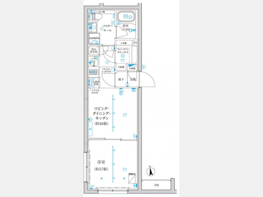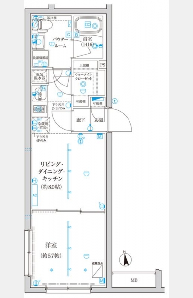 洋室 5.7 畳 1 室 LDK 8 畳 1 室 |
