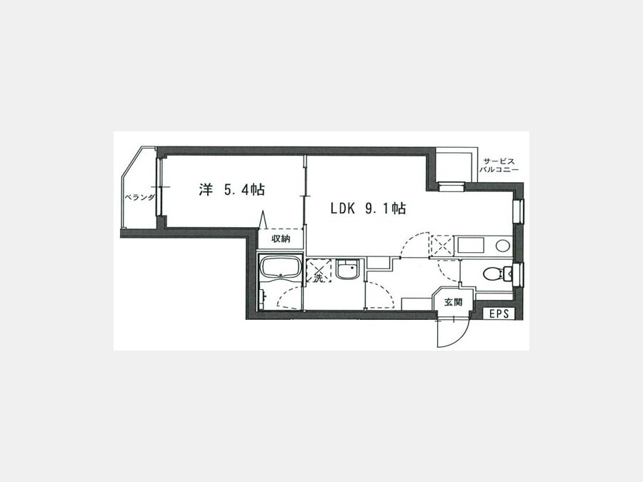 洋室 5.4 畳 LDK 9.1 畳 |