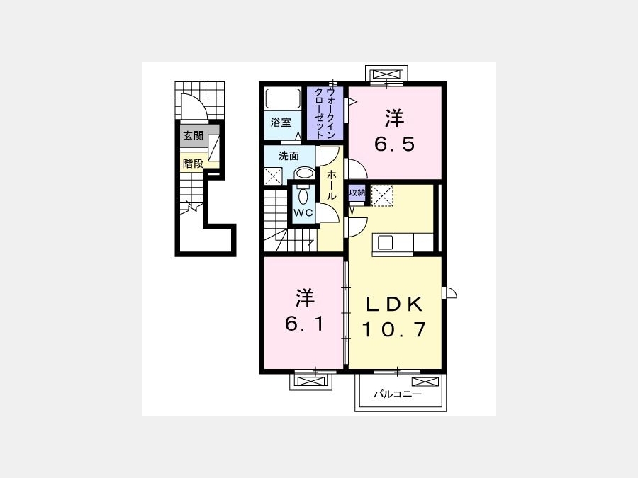 洋室 6.5 畳 1 室 洋室 6.1 畳 1 室 LDK 10.7 畳 1 室 |
