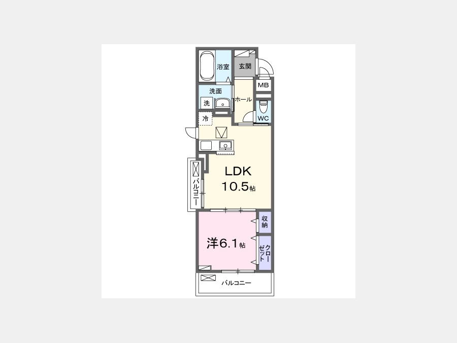 洋室 6.1 畳 LDK 10.5 畳 |