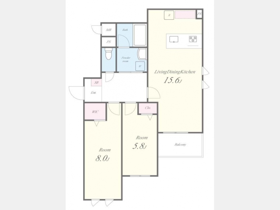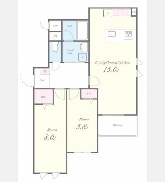 洋室 8 畳 1 室 洋室 5.8 畳 1 室 LDK 15.6 畳 1 室 |
