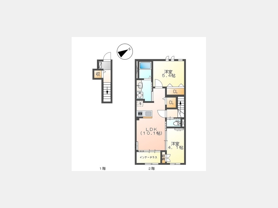 洋室 5.4 畳 洋室 4.1 畳 LDK 10.1 畳 |