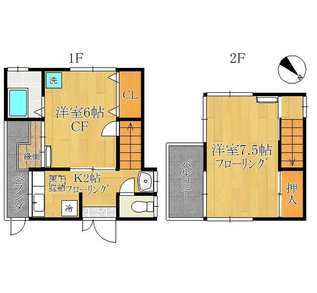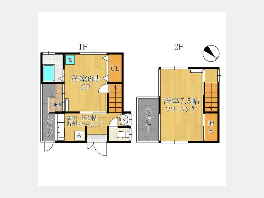 | 間取り | 2K | 階建 | 1階/2階建 |