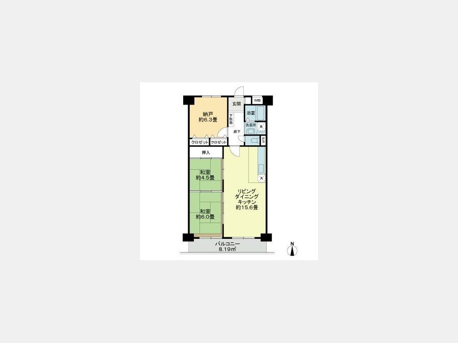 和室 4.5 畳 和室 6 畳 S 6.3 畳 LDK 15.6 畳 |