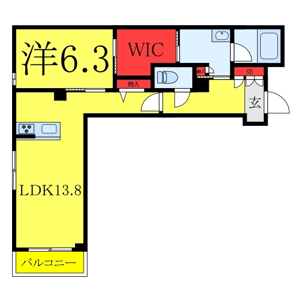LDK 13.8 畳 洋室 6.3 畳 |