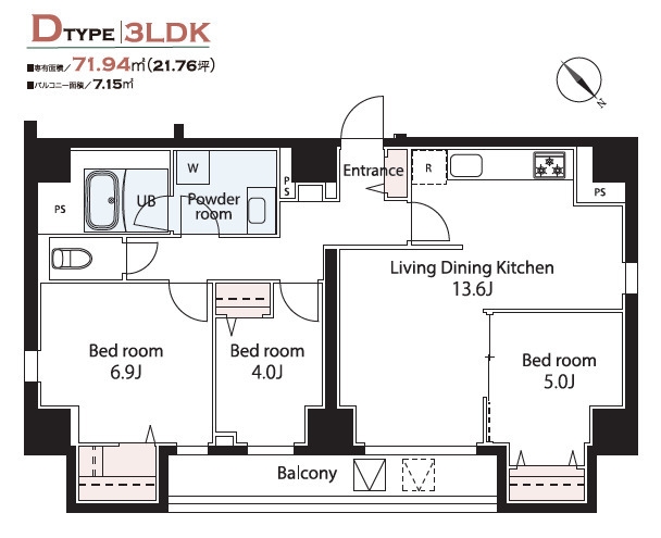 | 専有面積 | 71.92m² | バルコニー面積 | |