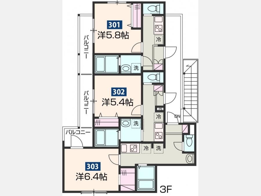 | 間取り | 1K | 階建 | 3階/3階建 |
