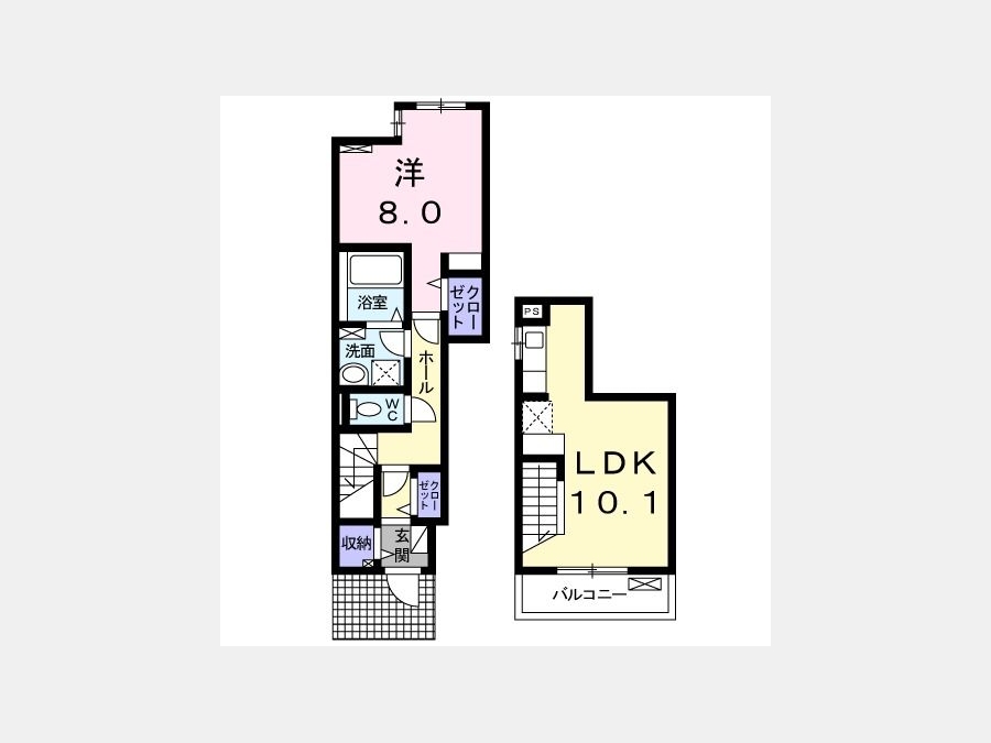 LDK 10.1 畳 2 階 1 室 洋室 8 畳 1 階 1 室 |
