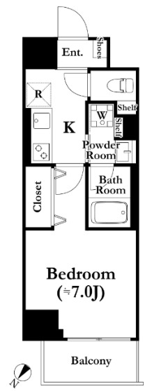 | 間取り | 1K | 階建 | 2階/8階建 |